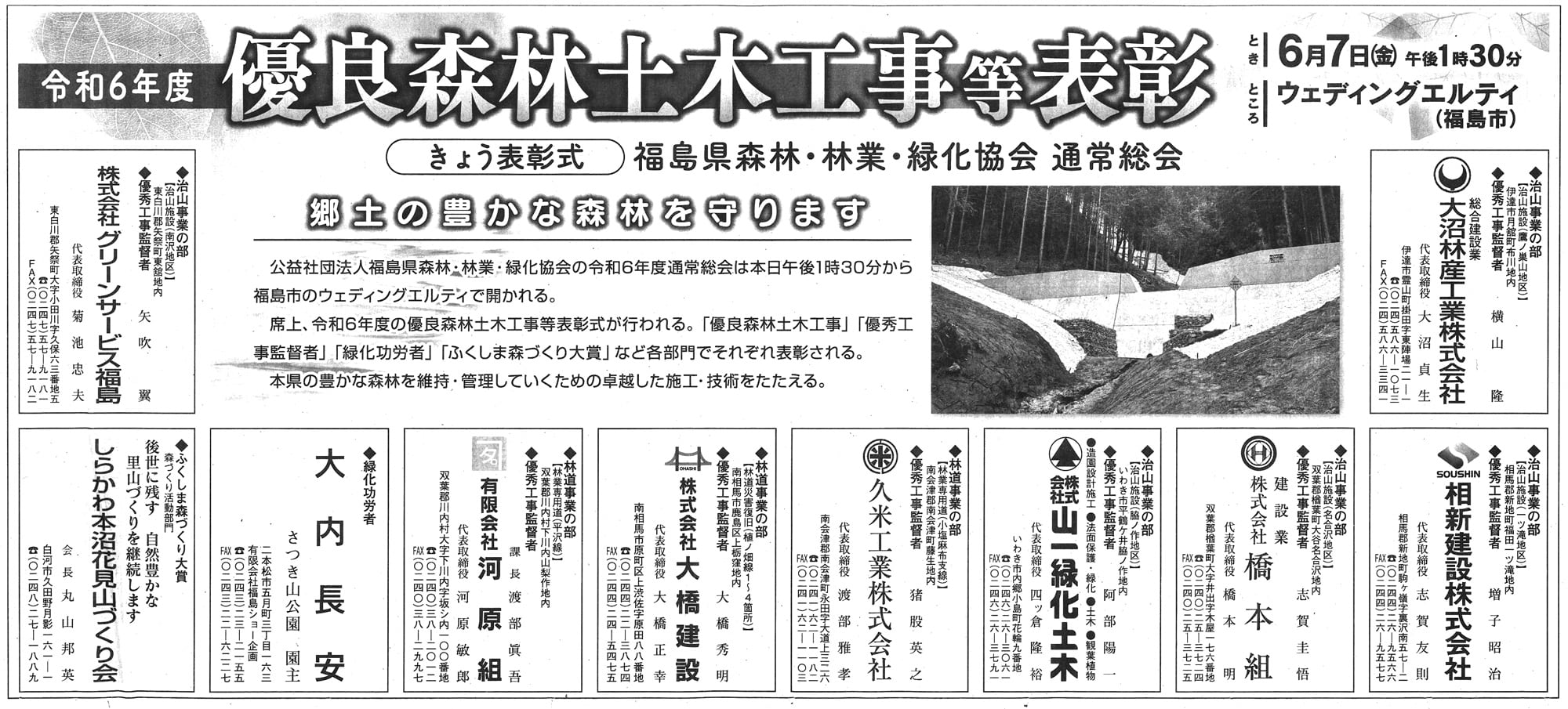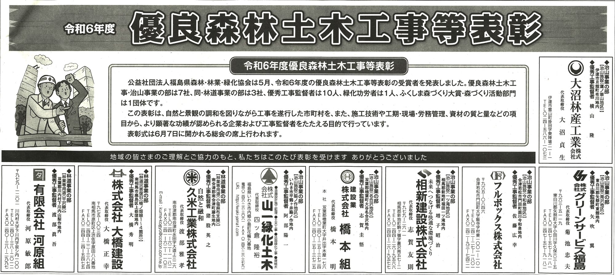 福島県森林・林業・緑化協会様からのご推薦を賜り、誠に光栄に存じます。